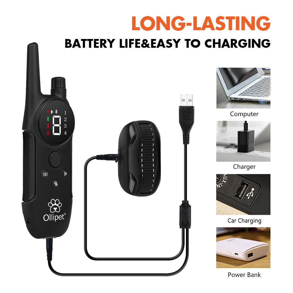 Smart, fjernbetjent system til lydighedstræning af din hund for eksempel jagthundetræning. Halsbåndet er forsynet med genopladeligt Lithium-Ion-batteri, der lades op via det medfølgende USB-kabel, der tilsluttes til din computer eller mobillader. Du kan også købe en løs USB-adapter / Oplader HER