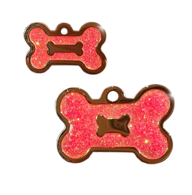Eksklusivt hundetegn i guldfarve m. glimmer, hvor der graveres på bagsiden.
