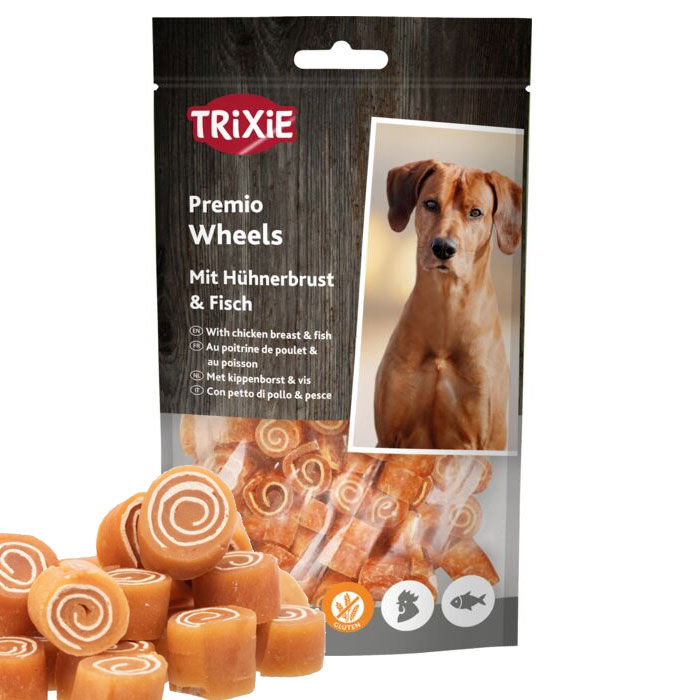 Trænger din hund til lidt lækkert med samtidig sundt, så kan vi klart anbefale de små Fish Chicken Wheels fra Trixie.