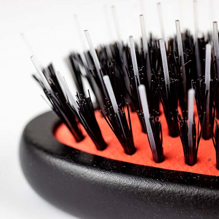 - Piggene af nylon og svinehår masserer huden samtidig med at det naturlige fedtlag fordeles i pelsen.
