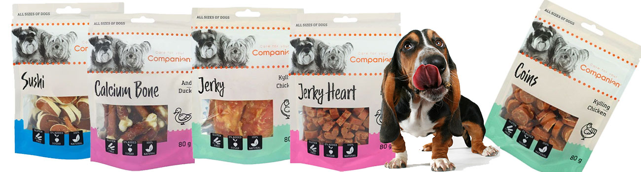 Hos Cotonshoppen.dk finder du et bredt udvalg af Companion-godbidder i mange forskellige smagsvarianter – både bløde og hårde godbidder, der passer til enhver hunds præference!