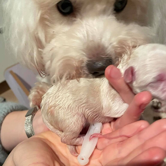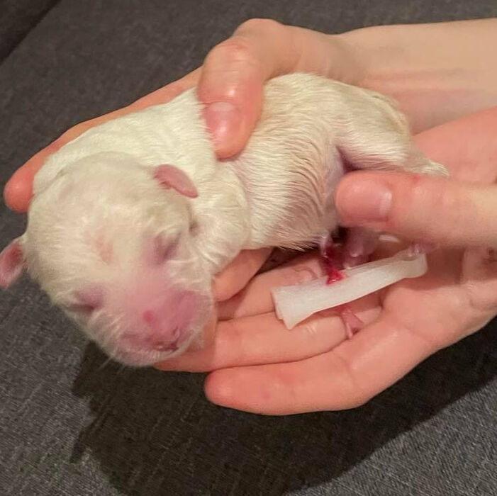 Klemmeluk fra Ollipet til den nyfødte hvalps navlestreng