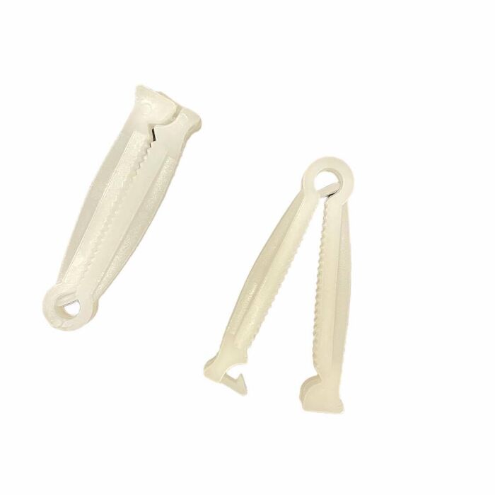 Navlestrengsklemmen lukker helt tæt omkring hvalpens navlestreng og vil derfor hurtigt stoppe en blødning.