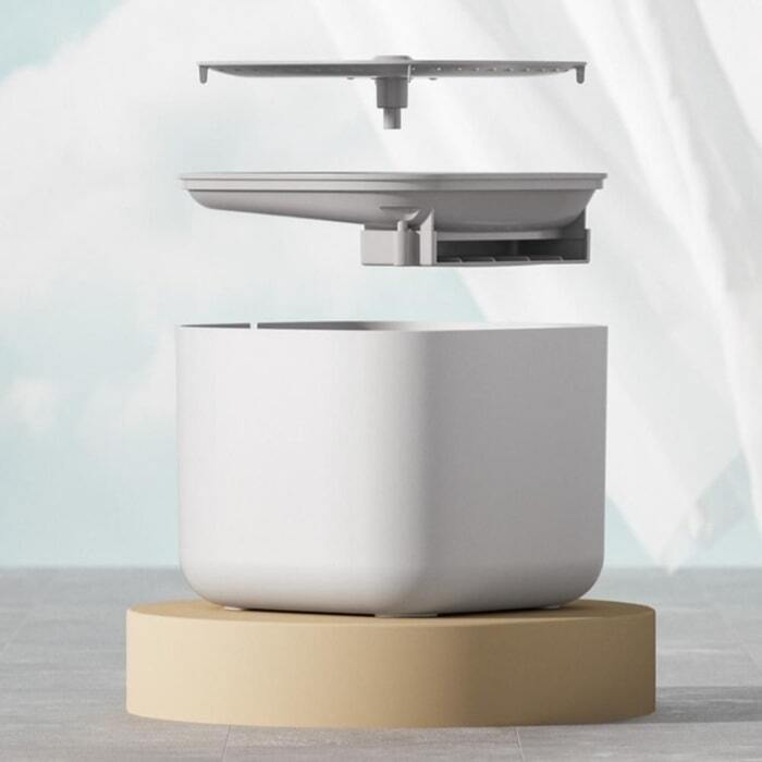 Det stilrene nordiske look passer perfekt ind i det moderne hjem, mens det diskrete LED-lys guider dig: blåt ved normal drift og rødt, når det er tid til genopfyldning.