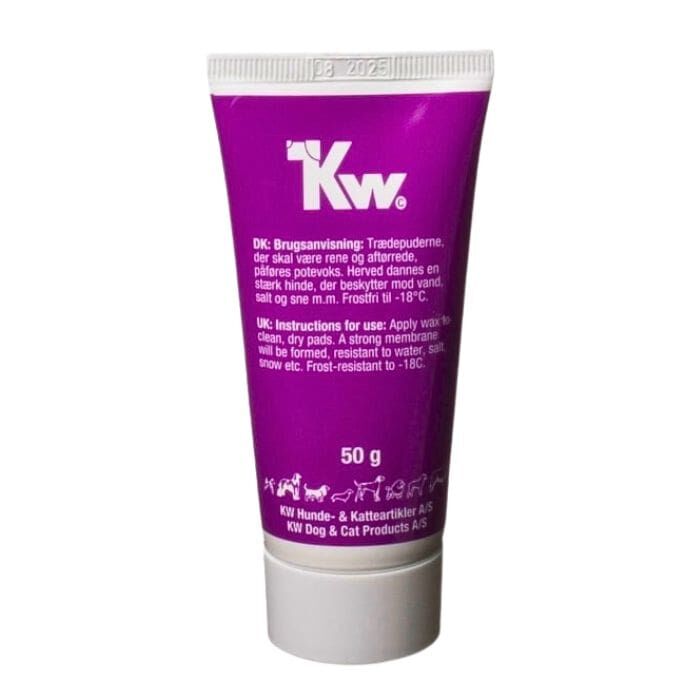 Denne KW potevoks creme på tube skaber en beskyttende hinde over hundens trædepuder og beskytter mod vand, salt, sne o.l.