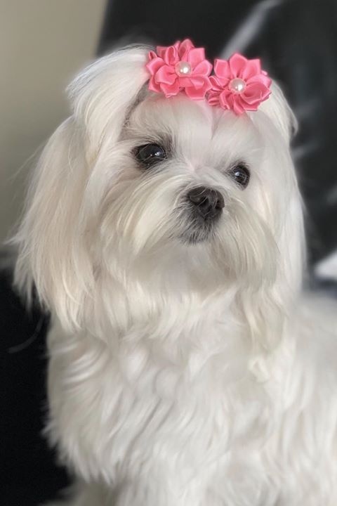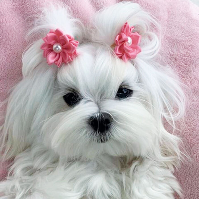 Med denne lille blomst kan din hund få sat en smuk hårtop, så den ikke får pels øjnene, og samtidig se super sød ud!