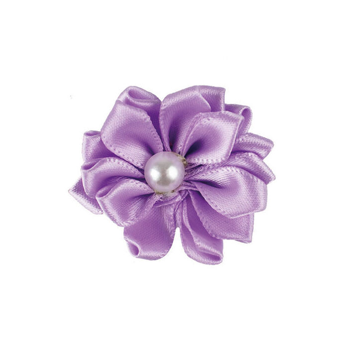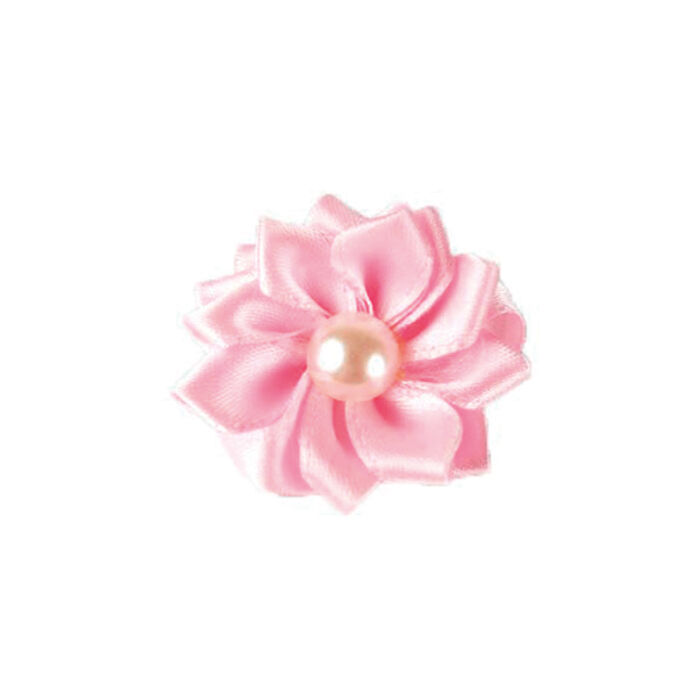 Den fine silkeblomst er dekorereret med en lille hvid perlemors perle.