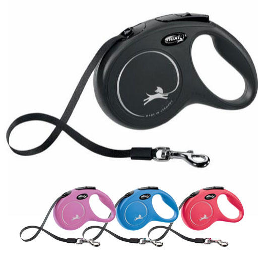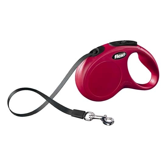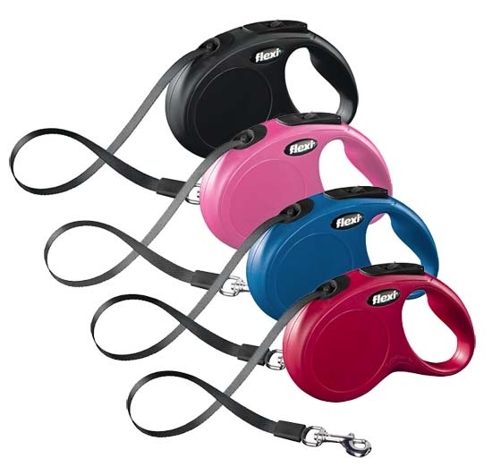 Den klassiske flexiline her i ny version med flad båndline af nylon, der tåler træk fra hunde op til 15 kg. Linen er desuden forsynet med enhåndsbetjent bremsesystem samt karbinhage. Fås i fire flotte farver.