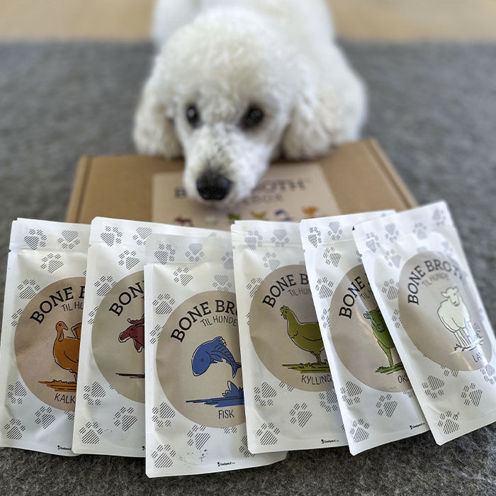 Hvis din hund har en lille appetit eller er kræsen, kan du også hælde lidt Bone Broth over dens foder for at gøre det lidt mere lækkert og appetitvækkende.