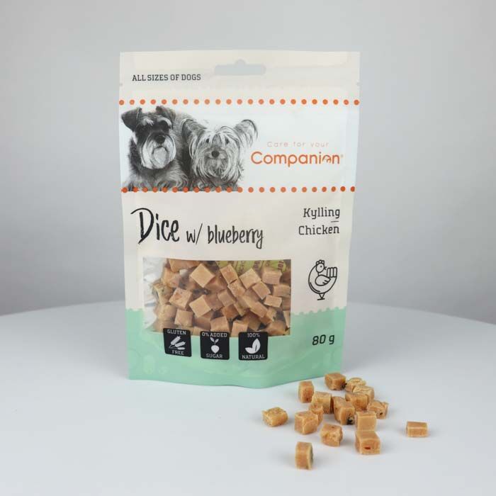 Kyllinge terninger fra Companion - gode godbidder med blåbær
