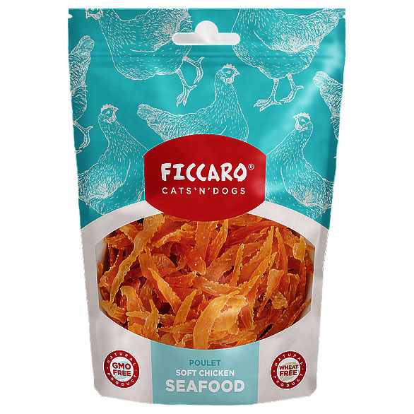 Ficcaro Soft Chicken Seafood er en allergivenlig godbid til både hunde og katte/hvalpe og killinger!