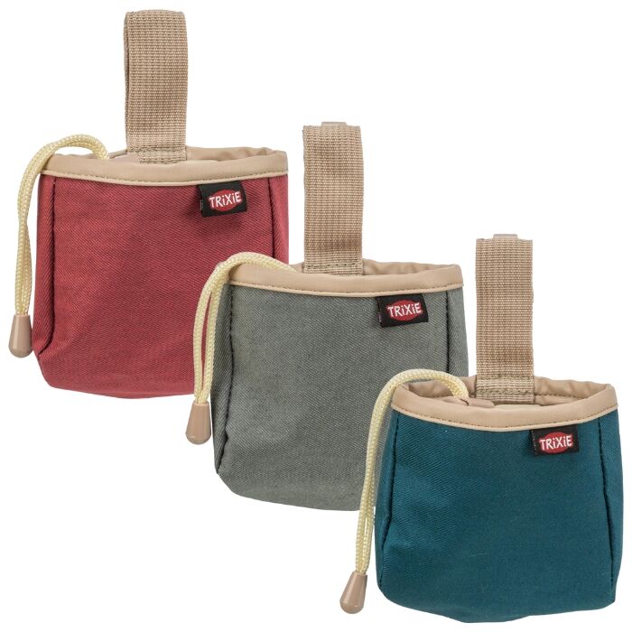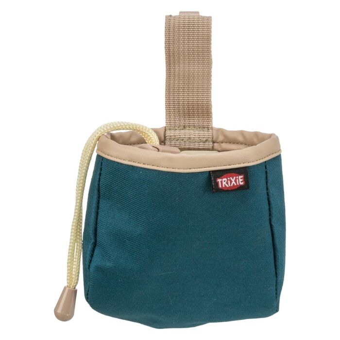 Her får du en super fin lille godbidstaske fra Trixie. Godbidstasken har en lille hank med en klemme monteret, så den for eksempel kan sættes fast i bæltet eller ved bukselommen. Derudover har den en snørelukning, så tasken kan lukkes til og godbidderne ikke falder ud.