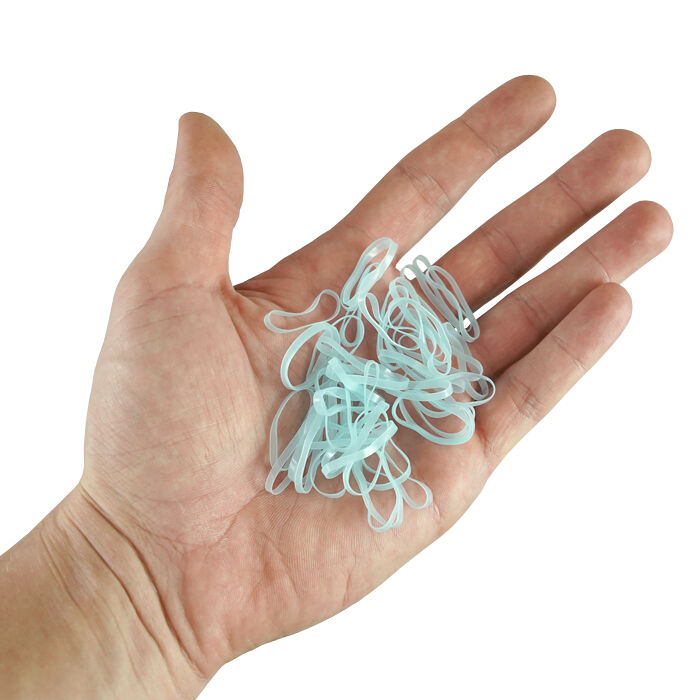 Elastikkerne leveres i smarte dåser med skruelåg, der hver indeholder ca. 400 stk.