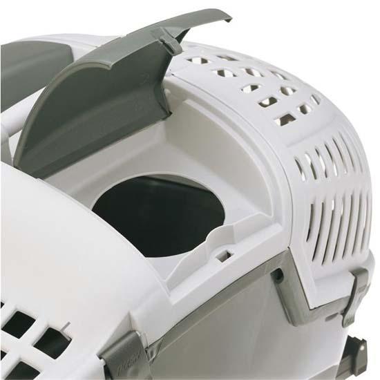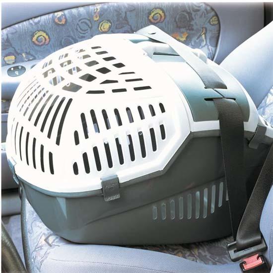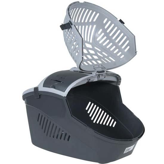 Toppen er i 2 dele med solide lukkebeslag som bliver fastgjort til midten, så den kan åbnes i begge ender. I toppen er der 2 smarte rum, hvor man f.eks. kan have en line, nogle godbidder eller lignende. Der er mulighed for at fastgøre transportkassen til sikkerhedsselen i bilen så din hund eller kat er i sikkerhed under kørslen.