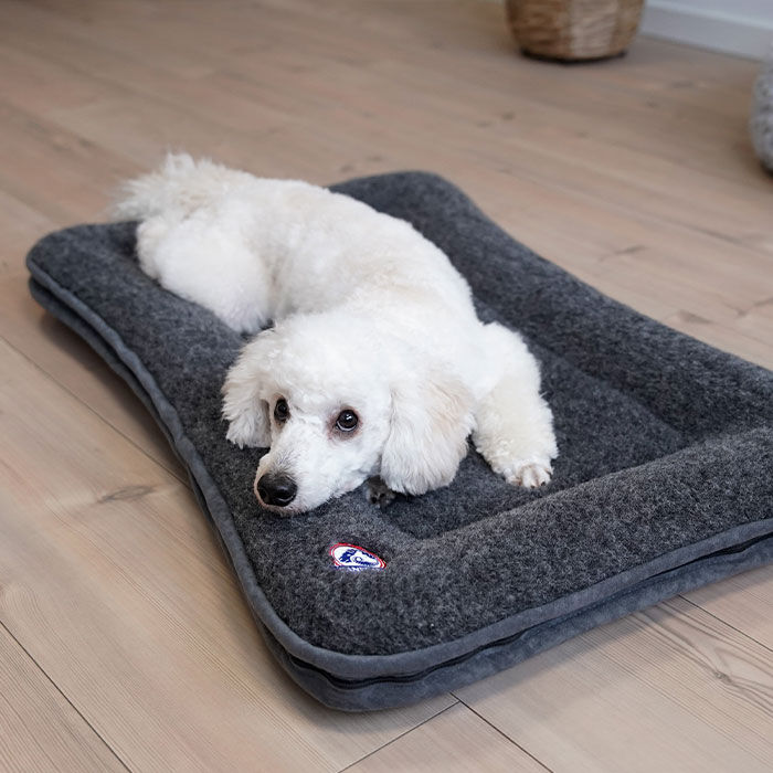 Vores hunde fortjener det bedste og en vigtig ting i hundens hverdag er, at den har et sted, hvor den kan finde ro, varme og tryghed. CANELANA uldmadras har en overside af 100% merino uld af høj kvalitet. Ulden er luftig, blød, åndbar og beskytter hunden mod kulde.