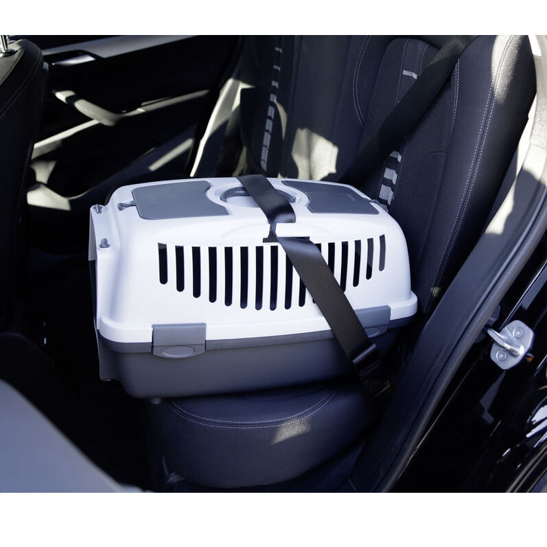 Buret er rummeligt og yderst stabilt, så du kan tage på bil, bus, tog eller flytur med din hund/kat. Buret spændes let fast i bilen med sikkerhedsselen, så det står sikkert under køreturen.