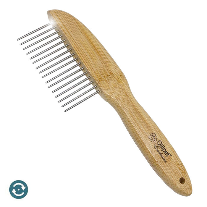 Komfortabel bambuskam med pigge af rustfri stål. Kammen har 16 stærke tænder på en længde af 38mm. Mellemrum mellem tænderne er ca. 4 mm.
