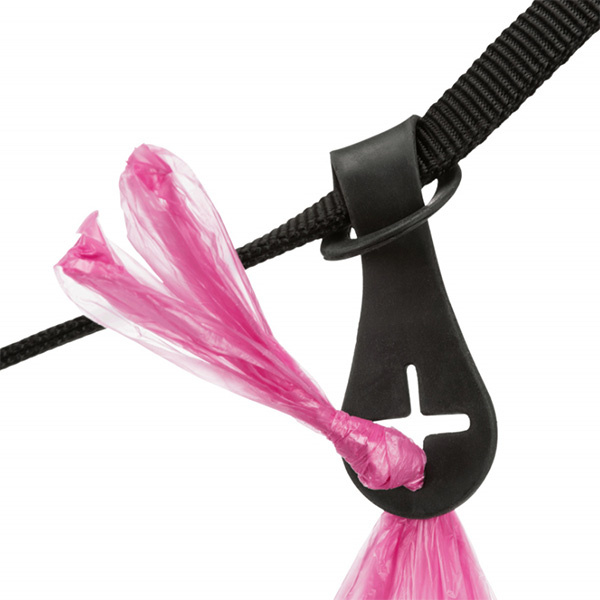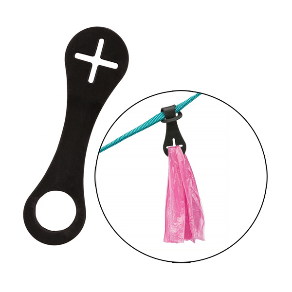 Denne smarte silikoneholder kan fastgøres til hundesnoren, flexlinen, bæltestroppen, hundeklapvognen og så videre! I krydset kan du snildt fastgøre en hømhøm-pose, når I skal på tur.