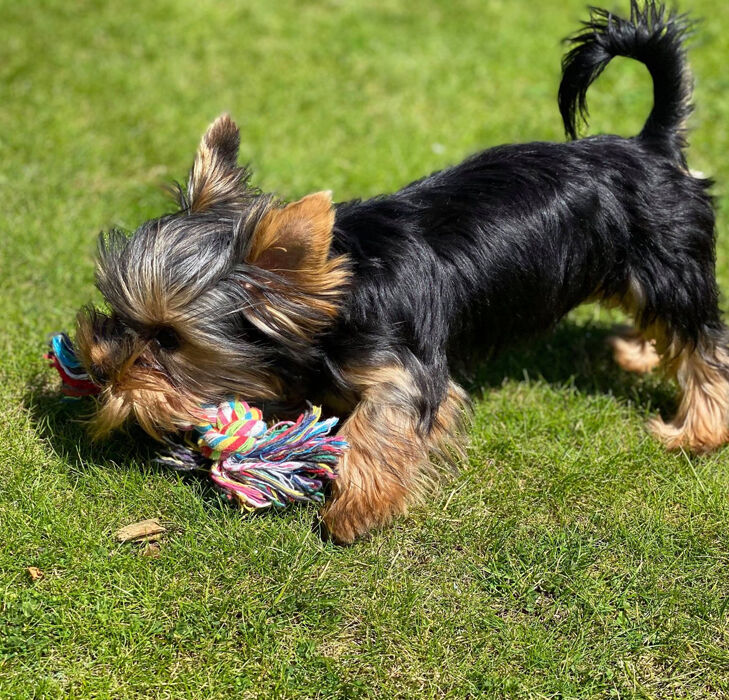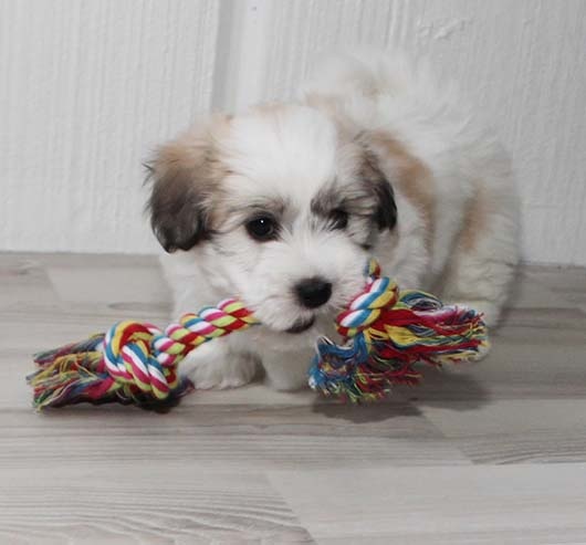 Hvalpe elsker at lege med reb, og deres små hvalpetænder tager ikke skade at at ruske i rebet her.