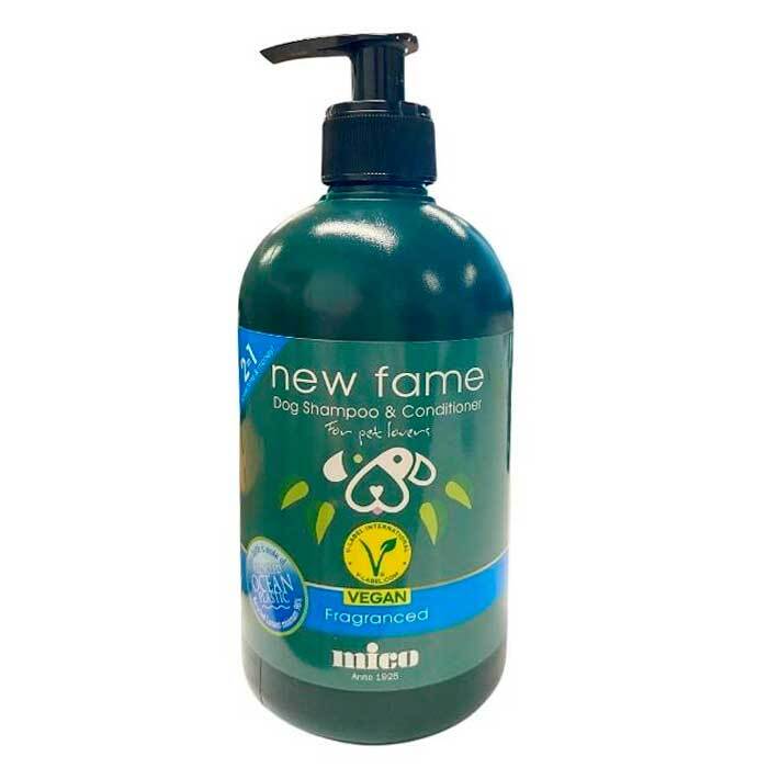 Denne 2i1 hundeshampoo er tilsat en mild parfume der efterlader pelsen med en blid behagelig duft. Hundeshampooen vasker pelsen helt ren samtidig med at den tilføre fugt til pelsen. New Fame 2i1 Hundeshampoo og Balsam er designet til at give din hund det bedste hundebad med dens milde og skånsomme formel, der gør den velegnet til regelmæssig brug.