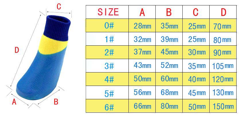 Se hvilken størrelse din hund skal bruge på skemaet nedenfor. (strømperne kan være lidt små i størrelserne).