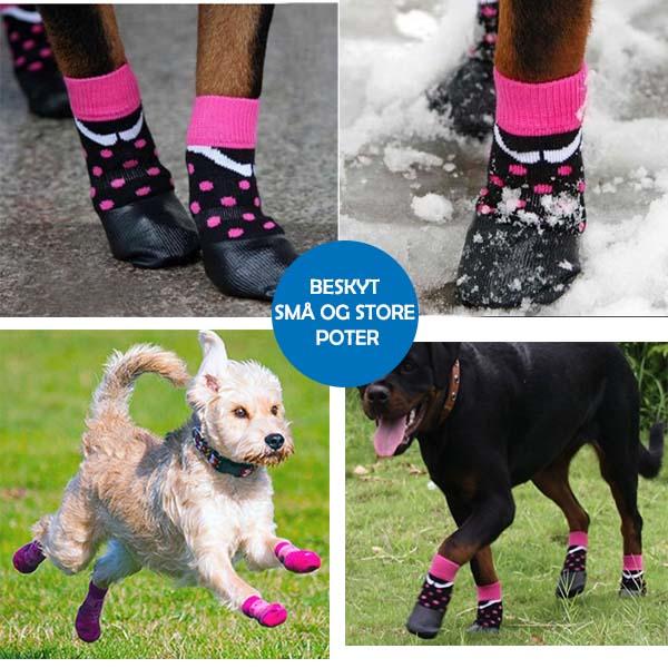 Har din hund sprukne eller tørre trædepuder, smør dem ind i en god potecreme om aftenen og giv hunden de små sokker på. Lad hunden sove med dem natten over. Har din hund beskadiget sin ene pote og fået forbinding på, vil det være en god ide at komme en strømpe udenpå forbindingen, da strømpen er skridsikker.