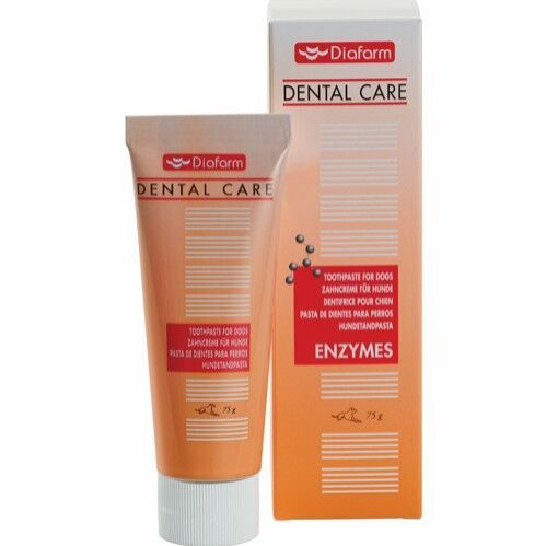 Denne hundetandpasta fra Diafarm er fremstillet med neutral smag og modvirker plak samt parodontale problemer. Ved at børste din hunds tænder dagligt med denne tandpasta, kan du sikre dig at hundens tænder og mund holdes sund. Denne hundetandpasta medvirker også til bedre ånde.