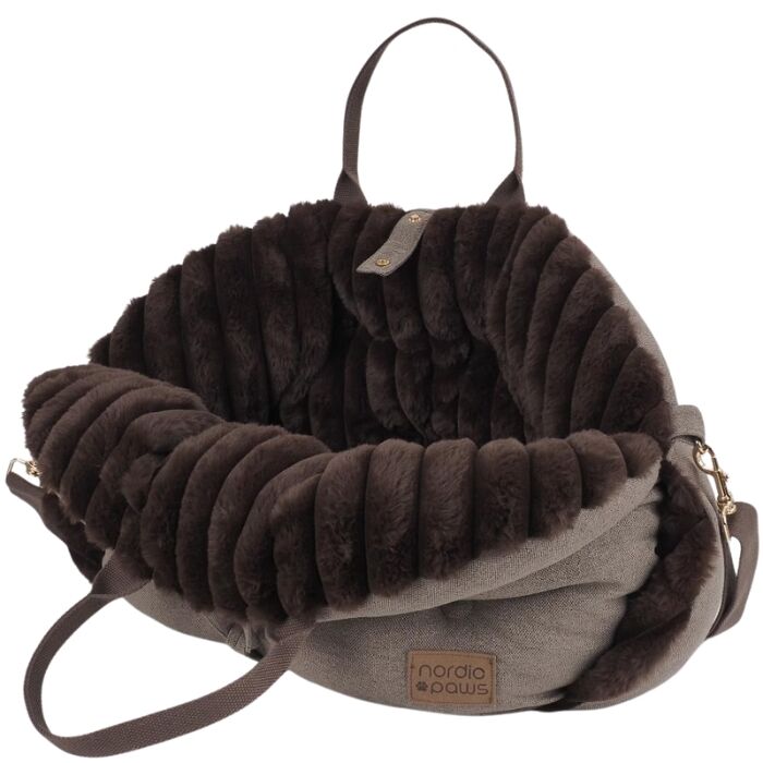 Med Nordic Paws Bæretaske Mara får du en superlækker bæretaske, der gør det nemt (og pænt!) at have din lille hund eller kat med på farten. Tasken er foret med den blødeste plys, så dit kæledyr kan putte sig godt ned og føle sig helt tryg – uanset om I er på café, i bilen eller bare ude at gå en tur.