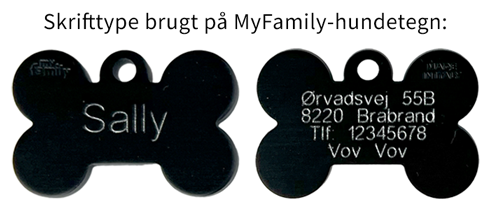 Der kan graveres 3 linjer á 15 tegn på bagsiden af hundetegnet.
