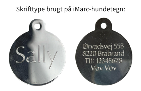 OBS: Det er ikke muligt at gravere specialtegn og/eller emojis på hundetegn fra iMarc.