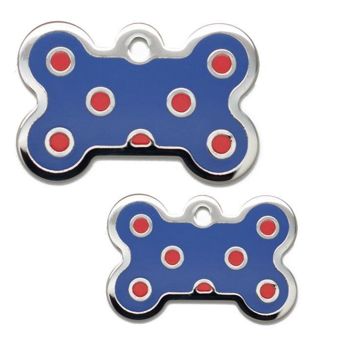 Super fint hundetegn i blå med røde prikker, hvor der graveres på bagsiden.