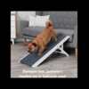 Har din hund hofteproblemer, ledsmerter eller på anden hvis mindre mobil, kan du hjælpe den meget ved at have en rampe til eksempelvis bilen eller sofaen. Denne rampe kan justeres i højden og er beklædt med skridsikkert filt. Med denne rampe skåner du nemt hundens skrøbelige led, og lader den komme til dig uden problemer eller anstrengelse.
