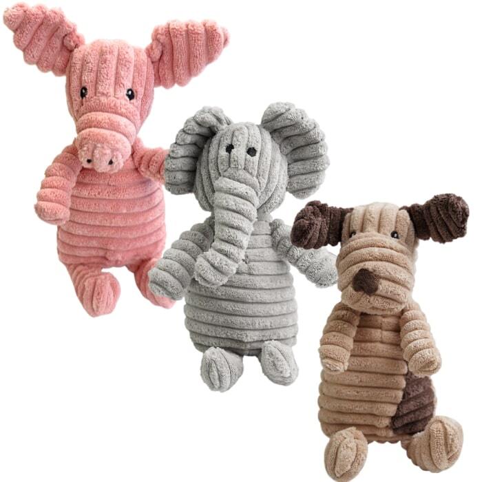 Gør legen ekstra hyggelig med de uimodståelige Mushy Mammals dyr – en skøn kollektion af bløde og sjove plysvenner til din hund. Her møder du Grynte, Hubert og Ellie – tre charmerende karaktereri blødt fløjl med brede riller i nylon, som både indbyder til kram, leg og nænsom tyggeglæde. Med en mild pivelyd i maven, broderede øjne og et nuttet design, er disse bamser perfekte for både små og mellemstore hunde, der elsker at bære rundt på deres legetøj eller putte med det i kurven. De er lige til at blive forelsket i – og et sikkert hit hos enhver legesyg vovse!