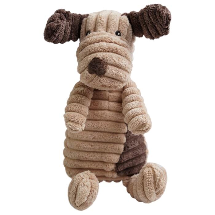 Det skønne hundelegetøj er produceret i blødt fløjl med brede riller i nylon.