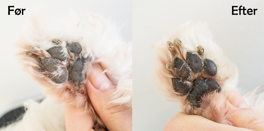 Vi anbefaler at fjerne de uønskede pelshår under poterne ca. hver 4 uge.
