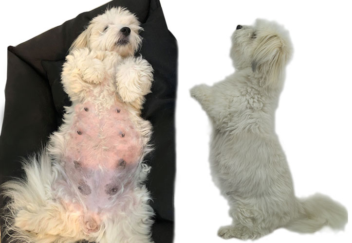 Her ses en drægtig tæve 8 uger henne i drægtigheden - Der er stadig en uge igen.