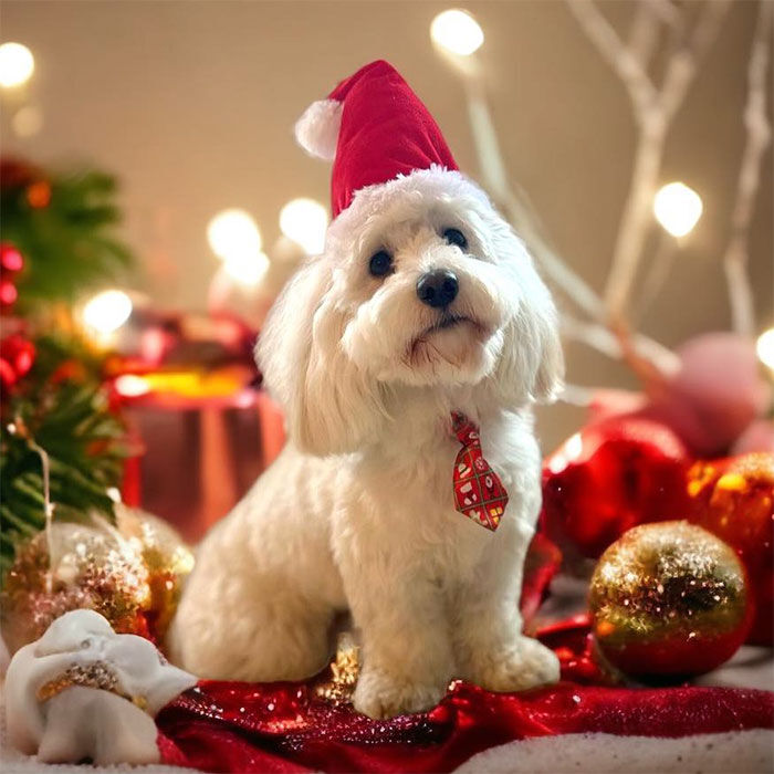 Nu kan du tage nogle fantastiske julebilleder af din hund, som du kan lægge på Facebook eller Instagram, når du vil ønske dine hundevenner glædelig jul.