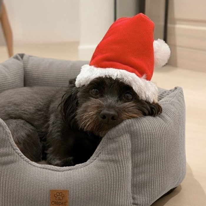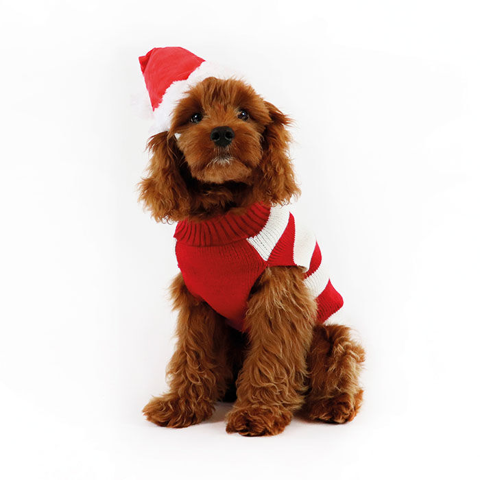 Fremstillet i blødt plysstof. Nu er der ingen undskyldning for, at din hund skal have sin helt egen nissehue.