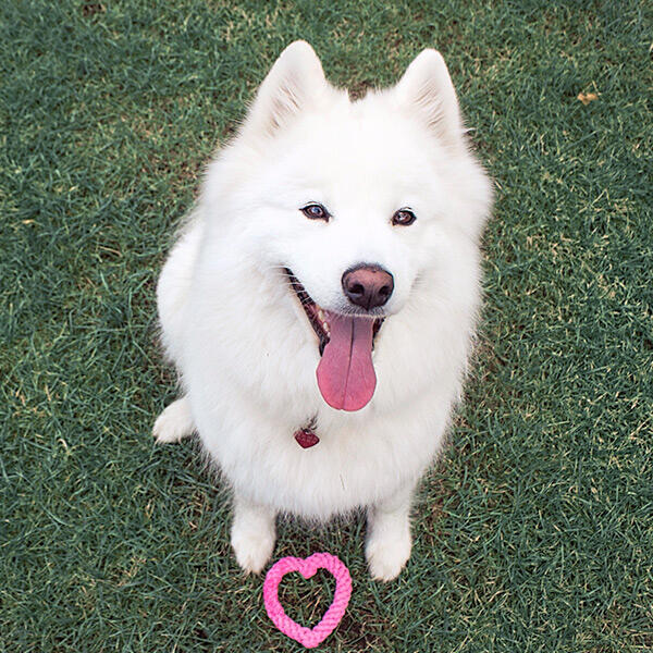 I pakken findes der et reb formet som et lyserødt hjerte, hvilket er inspireret af Valentinsdag. Rebet er lavet i små flet, så det er meget let for hunden at tage fat i.