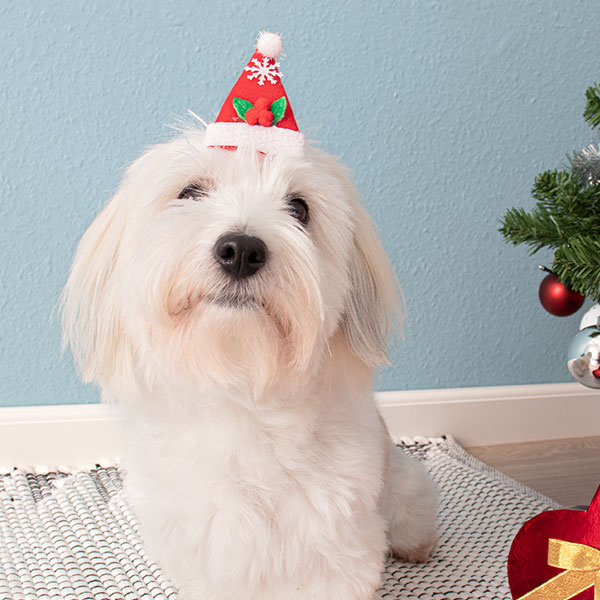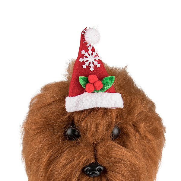 Spred julestemning med denne fine nissehue, som du nemt kan fastgøre i hundens hårtop med krokodillenæbet bagpå.