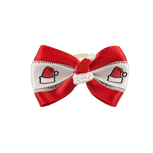 Smuk julesløjfe i silke med lille plast nissehue der kan pynte enhver hårtop til julehøjtiden.