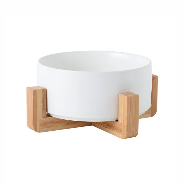 Keramik hundeskål i helt klassisk design med smuk bambusholder
