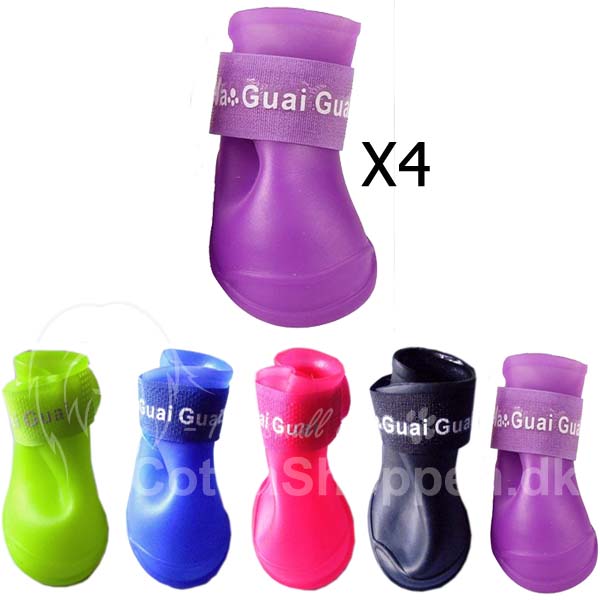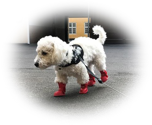 Praktiske små gummistøvler til hunde, der let kommer på hundens poter.