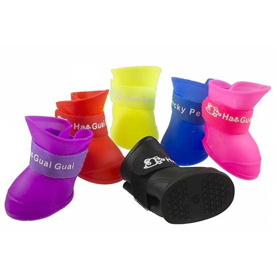 Praktiske små hundegummistøvler, der let kommer på hundens poter.