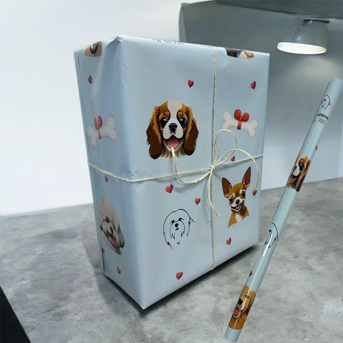 Vil du gøre din gave til en hundeelsker ekstra speciel? Cotonshoppens Hundegavepapir er det perfekte valg til at skabe en personlig og charmerende indpakning, der skiller sig ud. Med sit søde design fyldt med hundemotiver er dette gavepapir ideelt til enhver lejlighed – fødselsdage, "velkommen hjem"-gaver eller blot en kærlig overraskelse. Cotonshoppens Hundegavepapir er designet til at bringe et smil frem hos enhver, der elsker hunde. Det er også helt perfekt til hundens egne gaver. Motiverne er med forskellige hunderacer heriblandt: Cavalier King Charles Spaniel, Golden Retriever, Bulldog race, Doodle/puddel, Coton m.m.