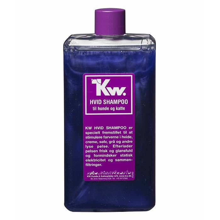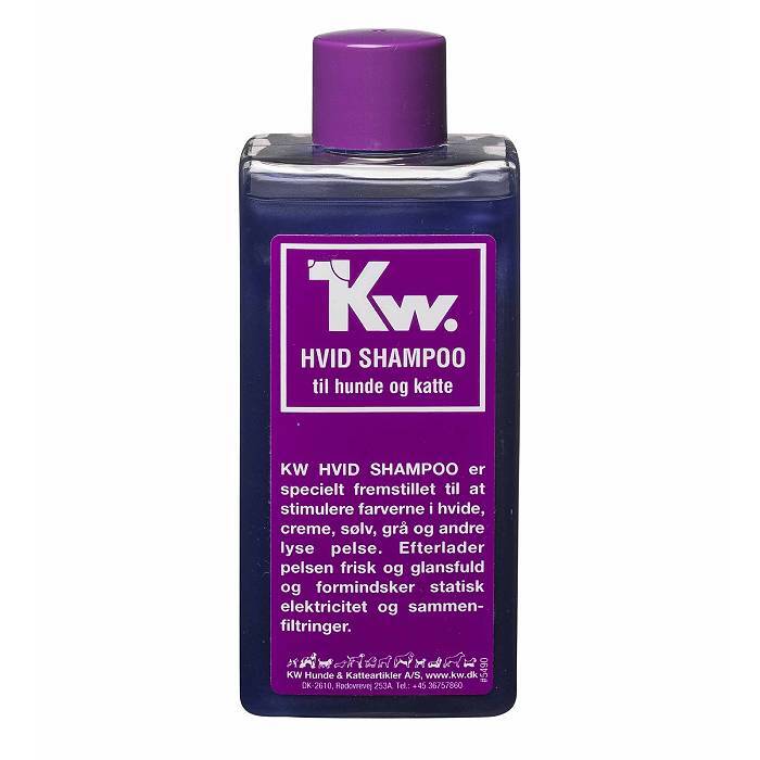 KW Hvid Shampoo stimulerer farverne i hvide, sølv, grå og andre lyse pelse og bidrager derved til, at din hund eller kat beholder sin flotte, glansfulde pels. Shampooen medvirker til, at pelsen fremstår opfrisket og glansfuld, og mindsker samtidig statisk elektricitet og sammenfiltringer.