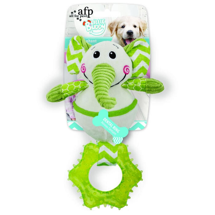 Nederst på hvalpelegetøjet sidder der en bidering, der er god at bide i når hvalpens små gummer klør, og når hvalpen skifter tænder ved 16 ugers alderen fra hvalpe til voksentænder.
