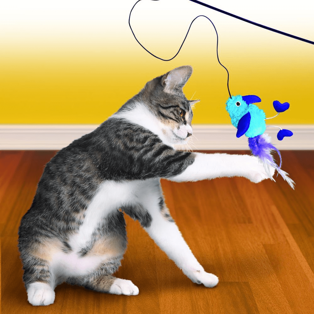 Legetøjet er designet til sjov interaktiv leg mellem kat og ejer, da du som ejer skal holde i pinden og føre den lille fugl forbi din kat, hvilket helt sikkert vil vække dens interesse.