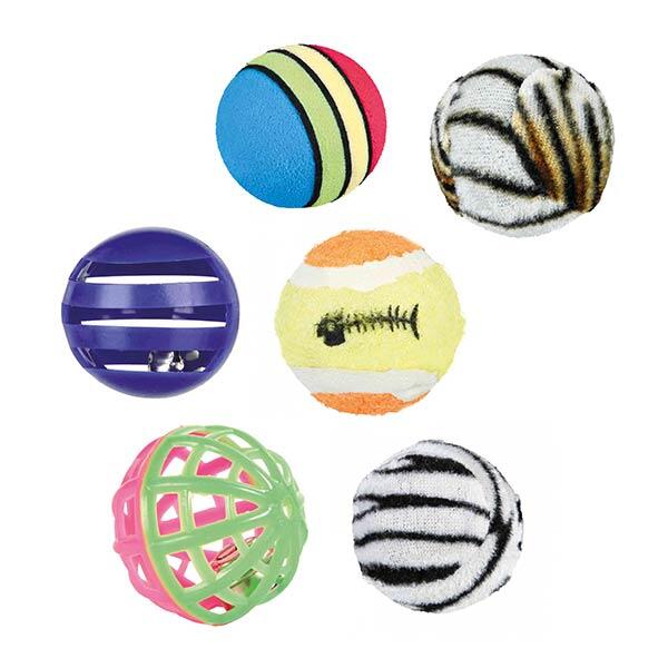 Alle boldene har bjælde eller raslelyd. I dette sæt får din kat 6 helt forskellige bolde med forskellige overflader. Ved at kunne lege med bolde med forskellige overflader, stimuleres kattens sanser - her får den nemlig både bløde, plyssede bolde og fastere bolde i plastik. De små bolde er alletiders for din killing eller kat at lege med - den vil både kunne holde dem pga. størrelsen, samt spæne efter dem, når de triller hen af gulvet. Her bliver kattens jagtinstinkter også træner, og den kan sætte farten rigtigt op, for at fange den.