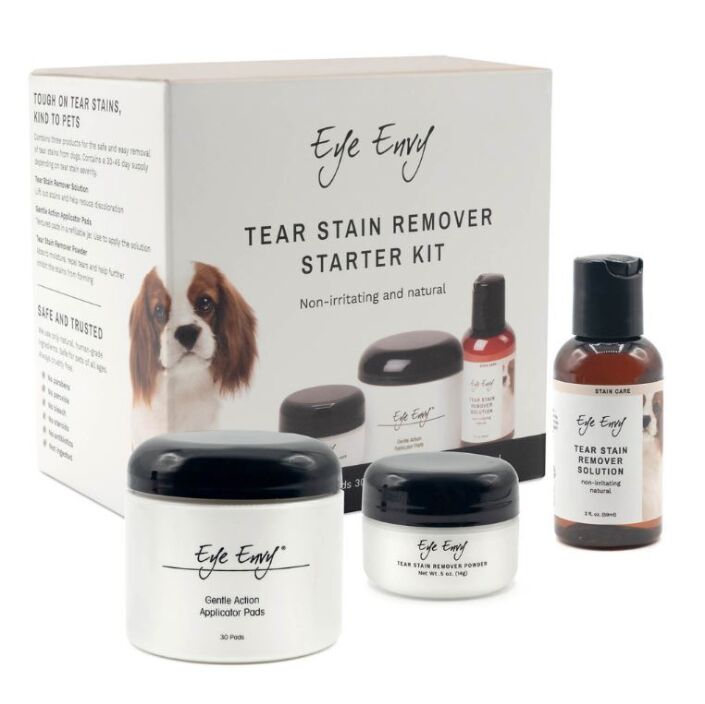 Eye Envy er et naturprodukt, der let og effektivt fjerner tårestriber og misfarvninger i pelsen. Her får du det komplette sæt af produkter mod tårestriber.